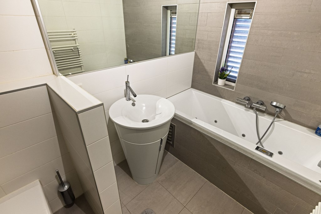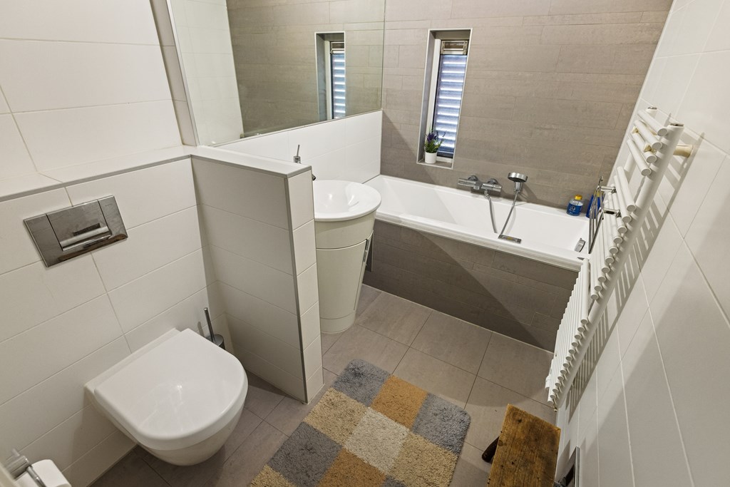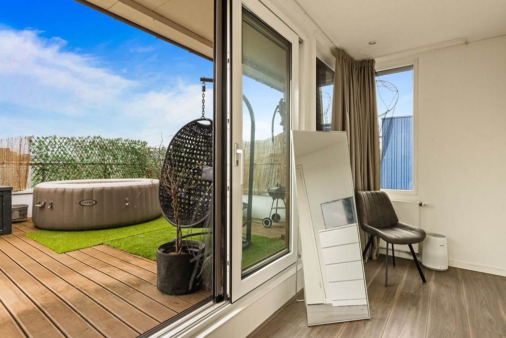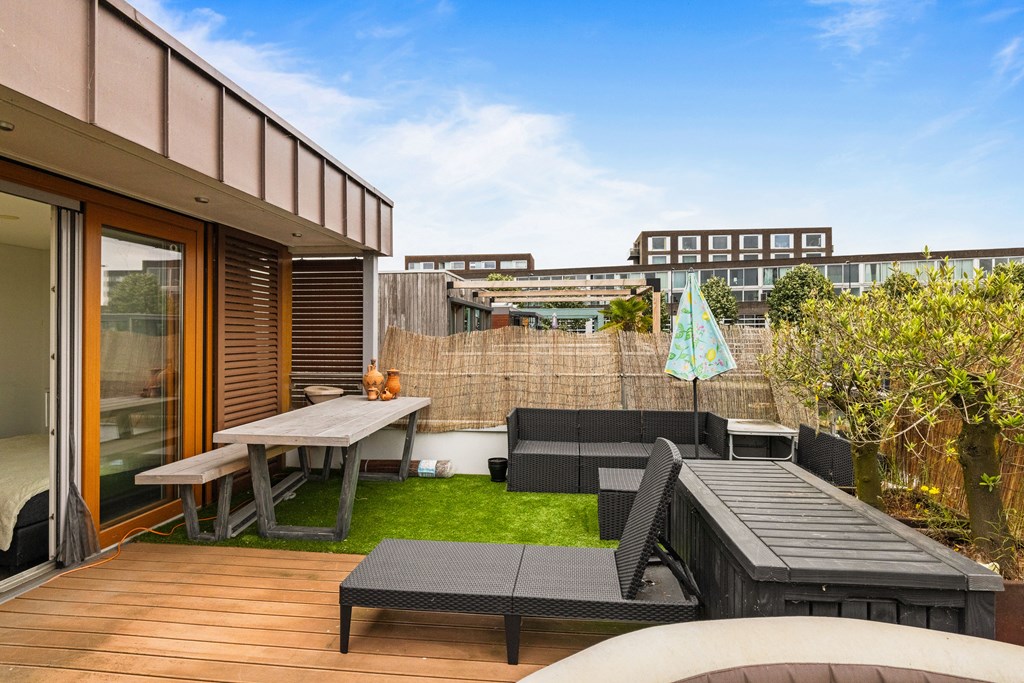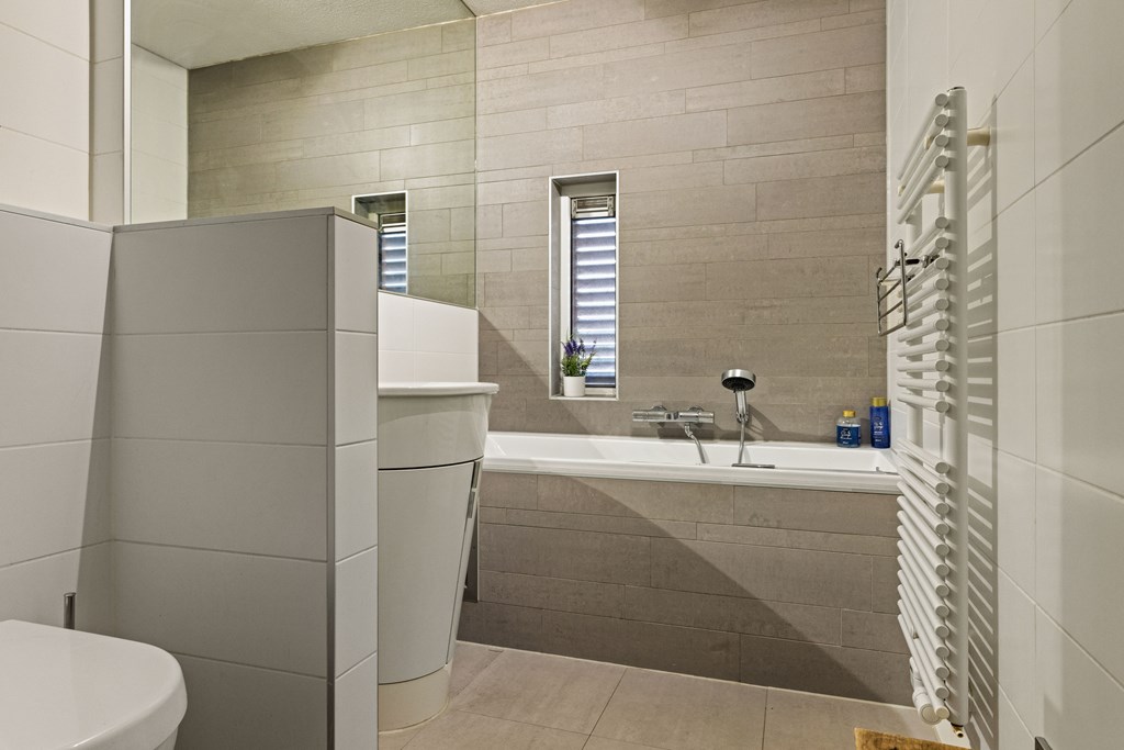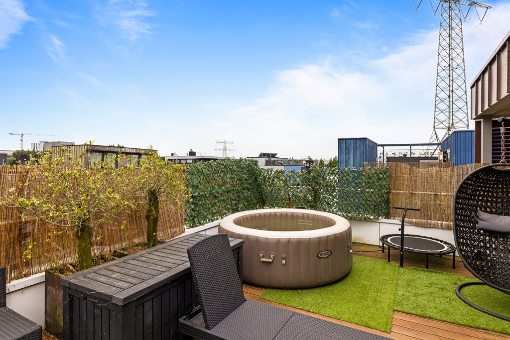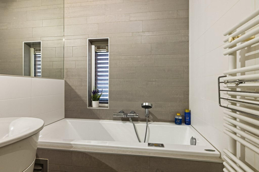 Indeling eerste verdieping (woonlaag 3): Op de eerste verdieping vindt u een ruime badkamer met toilet en ligbad/whirlpool. De ruime slaapkamer grenst aan het royale dakterras, waar u in alle privacy kunt genieten van het uitzicht en de zon. Dit dakterras is de ideale plek om te ontspannen en de omgeving in u op te nemen.