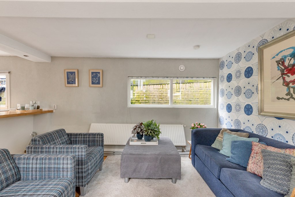 Via de entree op het voordek kom je via een trapje in de ruime living met open keuken waarin een U-vormig keukenblok met eetbar is opgesteld.