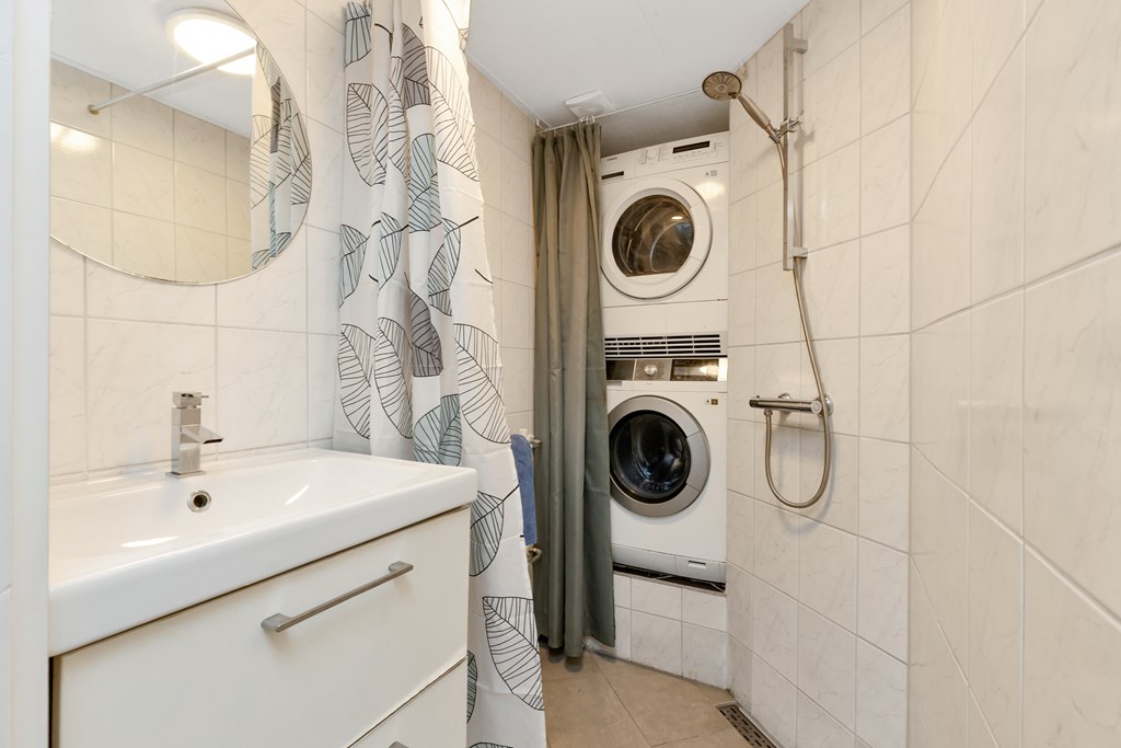 Naast een separaat toilet is via de gang de badkamer met douche, wastafel en opstelling wasmachine en droger bereikbaar. Aan deze zijde vinden we ook een tweetal slaapkamers in grote variërend. Een vaste kastenwand in de “master-bedroom” biedt voldoende opbergmogelijkheden maar uiteraard kan de kleine slaapkamer ook omgetoverd worden naar een ruime inloopkast.