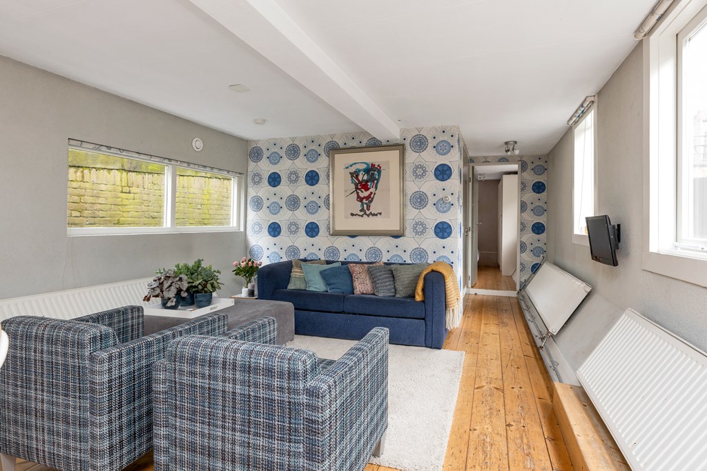 € 485.000,- v.o.n. – Op één van de bekendste kruispunten in de grachtengordel, de kruising Prinsengracht-Brouwersgracht, ligt aan de Brouwersgracht 95 G de opvallend blauwe woonboot *JANTJE* te koop.