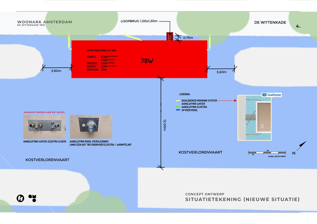 U koopt dus de rechten op de ligplaats, inclusief een nieuwbouwplan dat door de gemeente Amsterdam reeds is goedgekeurd. Het bouwen van de nieuwe ark komt geheel voor rekening van de nieuwe eigenaar.