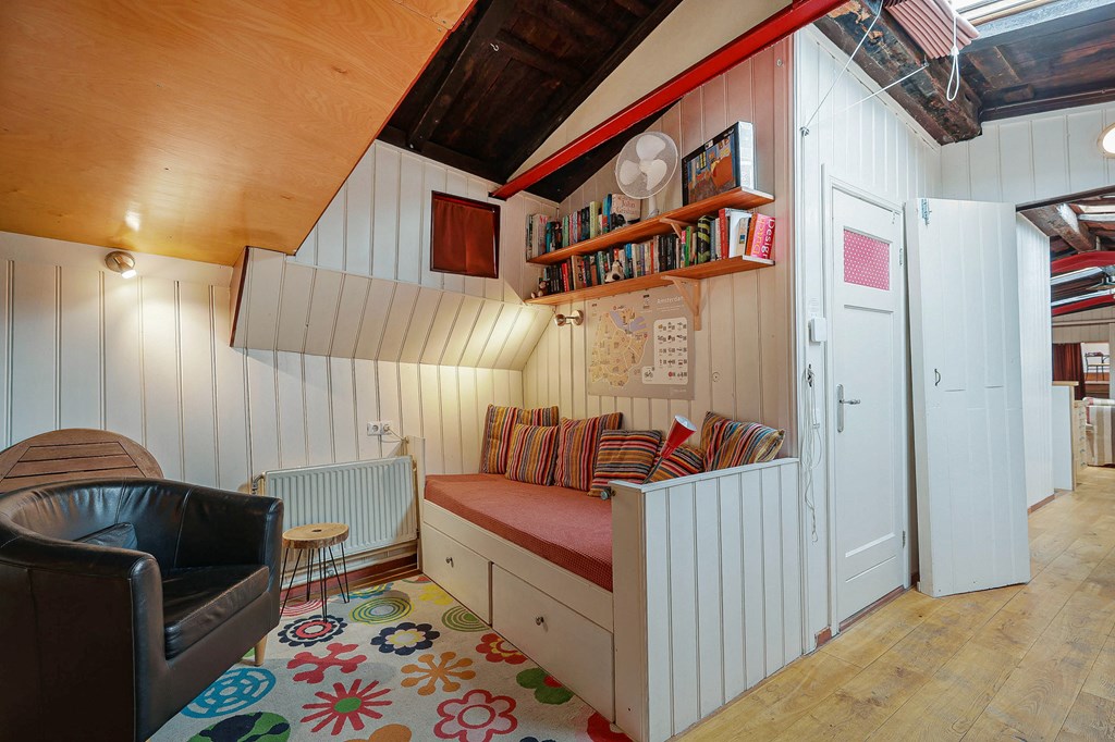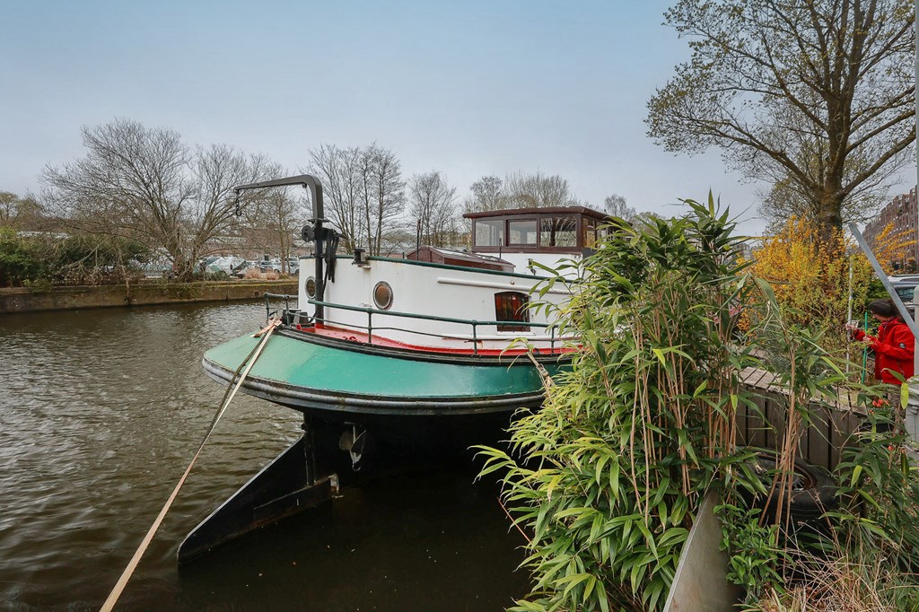 Woonschip EERSTE ZORG ligt op een van de mooiste woonlocaties van Amsterdam in een rustige, groene buurt met een dorps karakter midden in het bruisende centrum met uitzicht op het water en monumentale pakhuizen.