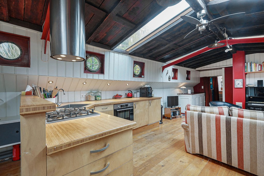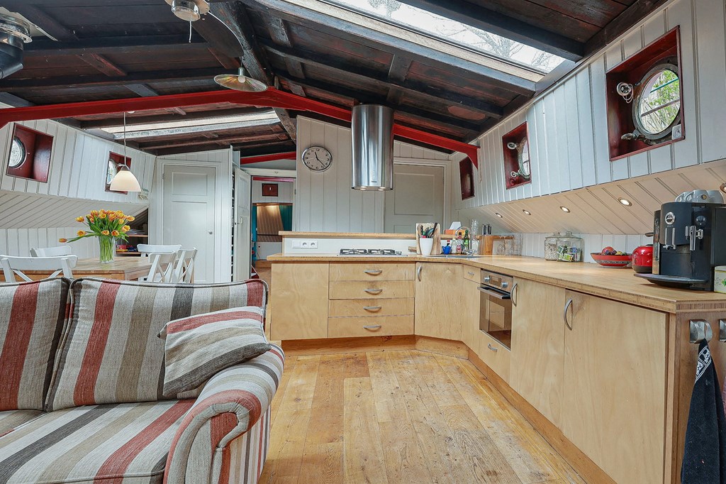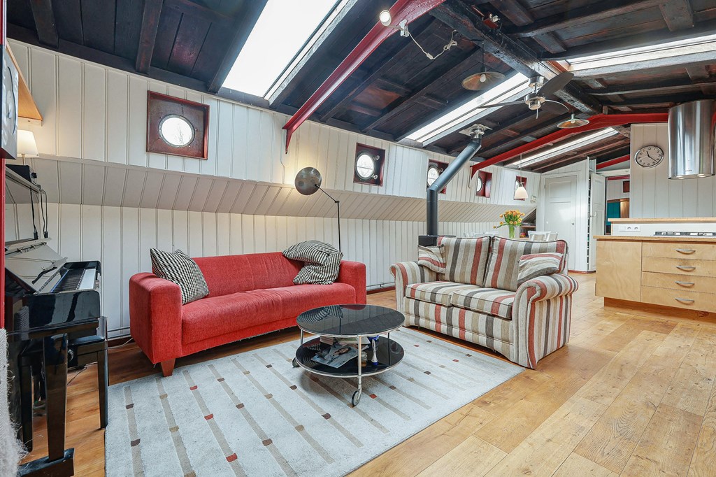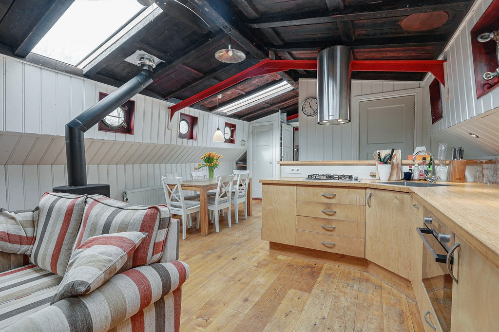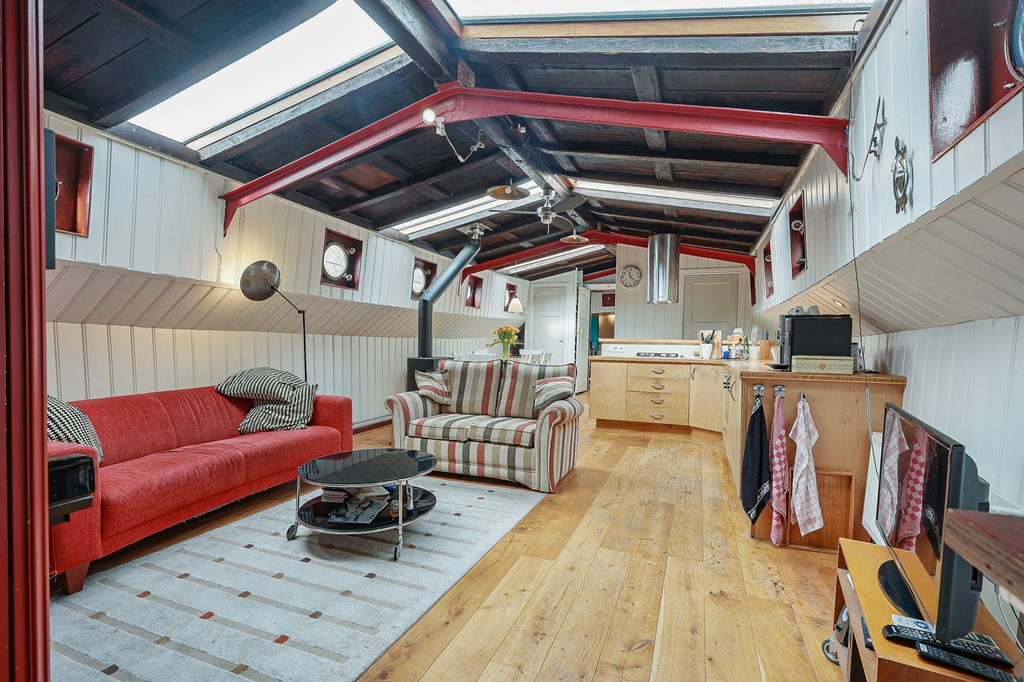€ 719.000,- v.o.n. – Ruim woonschip te koop gelegen aan het sfeervolle Entrepotdok!