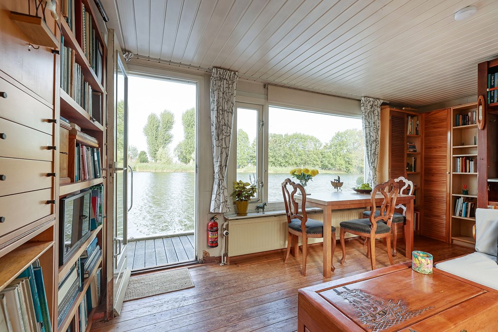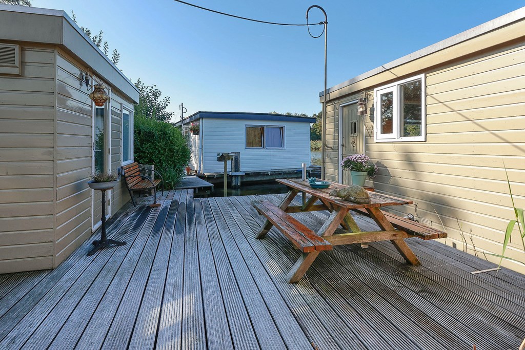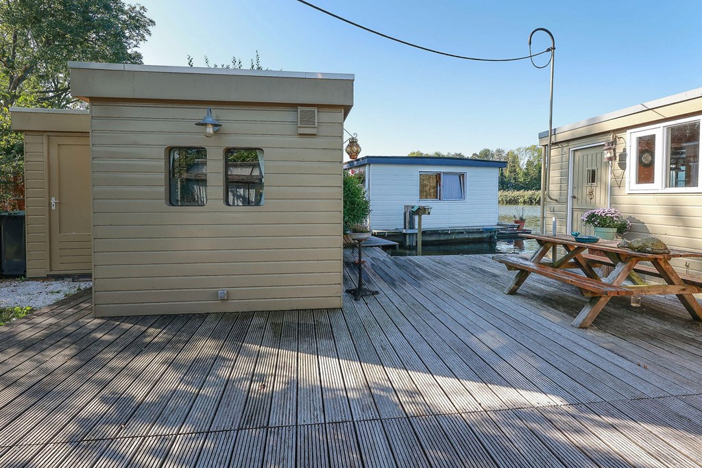 Aan de waterzijde is een ruim drijvend terras met zwemsteiger. Uiteraard is een plezierbootje langszij de woonark mogelijk…want op een warme zomeravond een ijsje halen bij de welbekende ijssalon Nelis staat waarschijnlijk op uw verlanglijstje…
