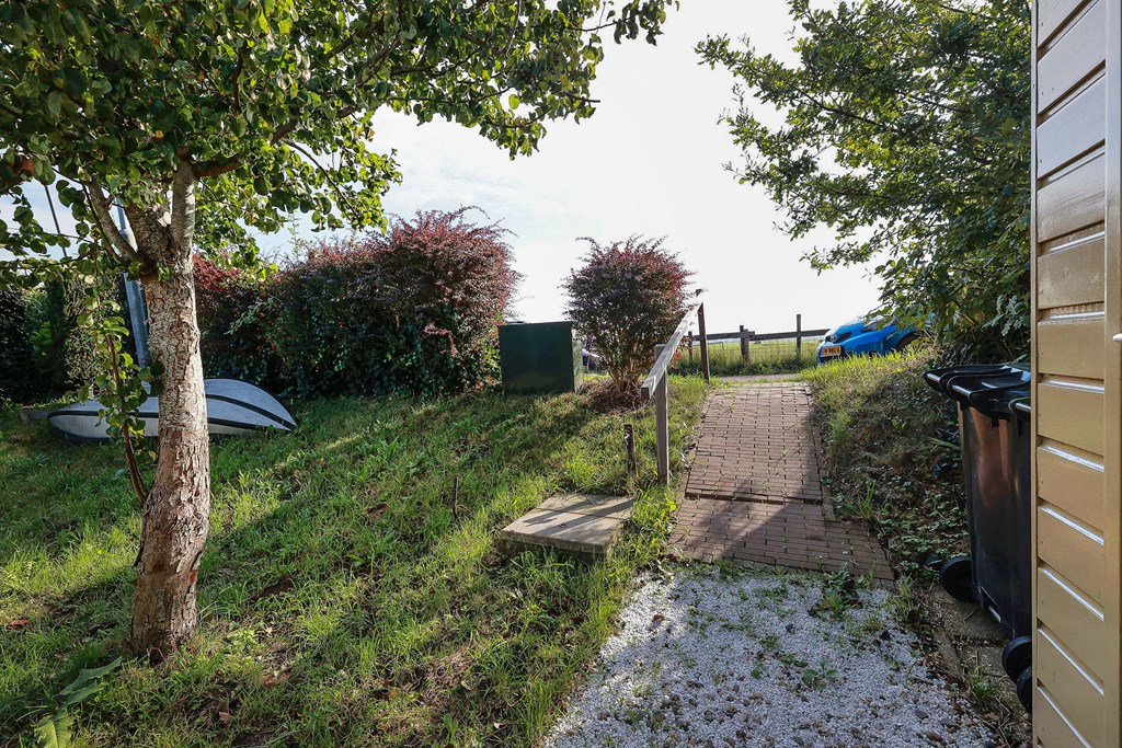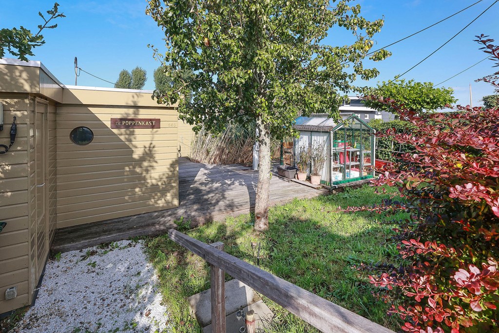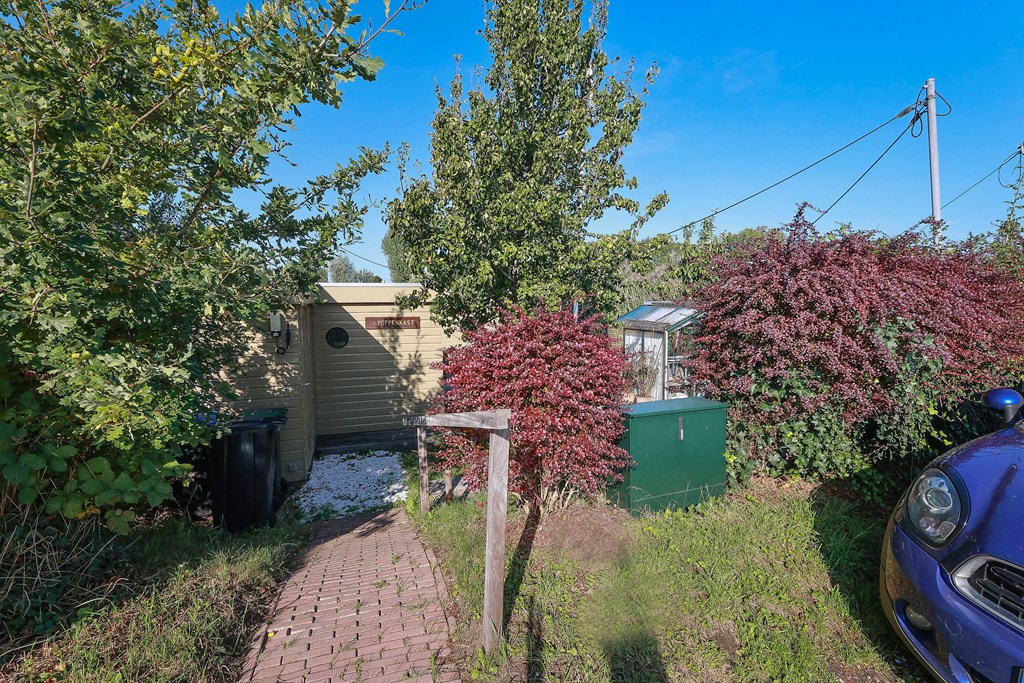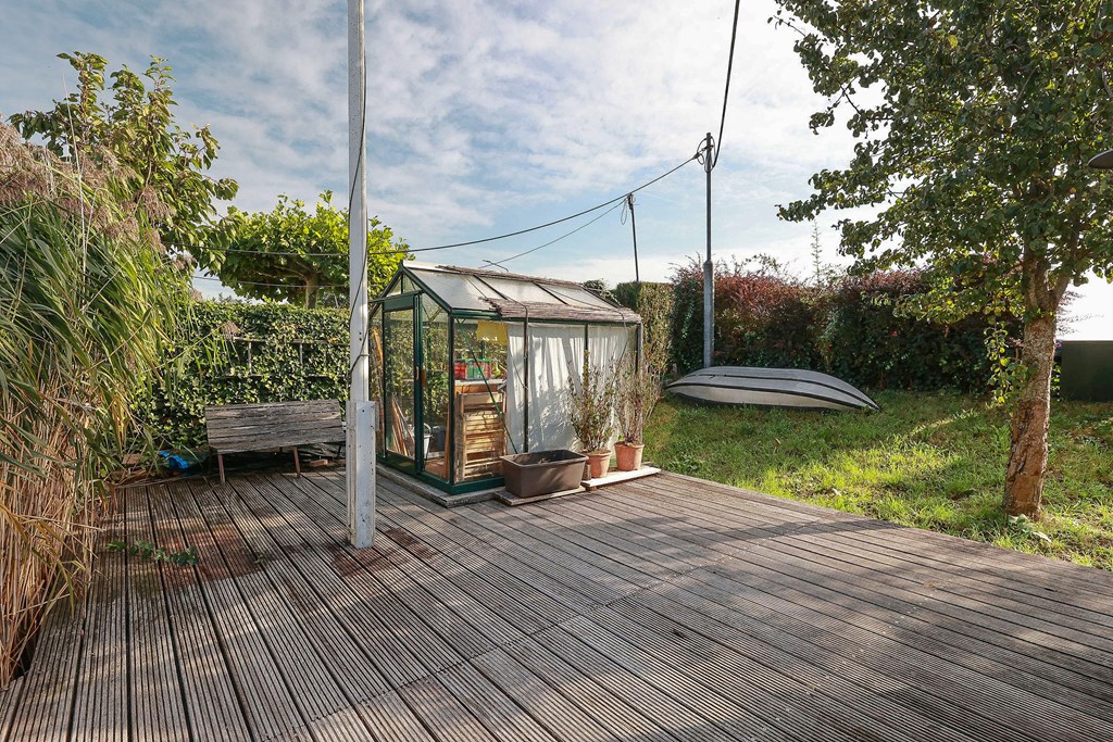 In de tuin staat een bijgebouw dat kan dienen als volwaardige verblijfsruimte of kantoor. Tevens is er nog een apart schuurtje en een glazen kas.
