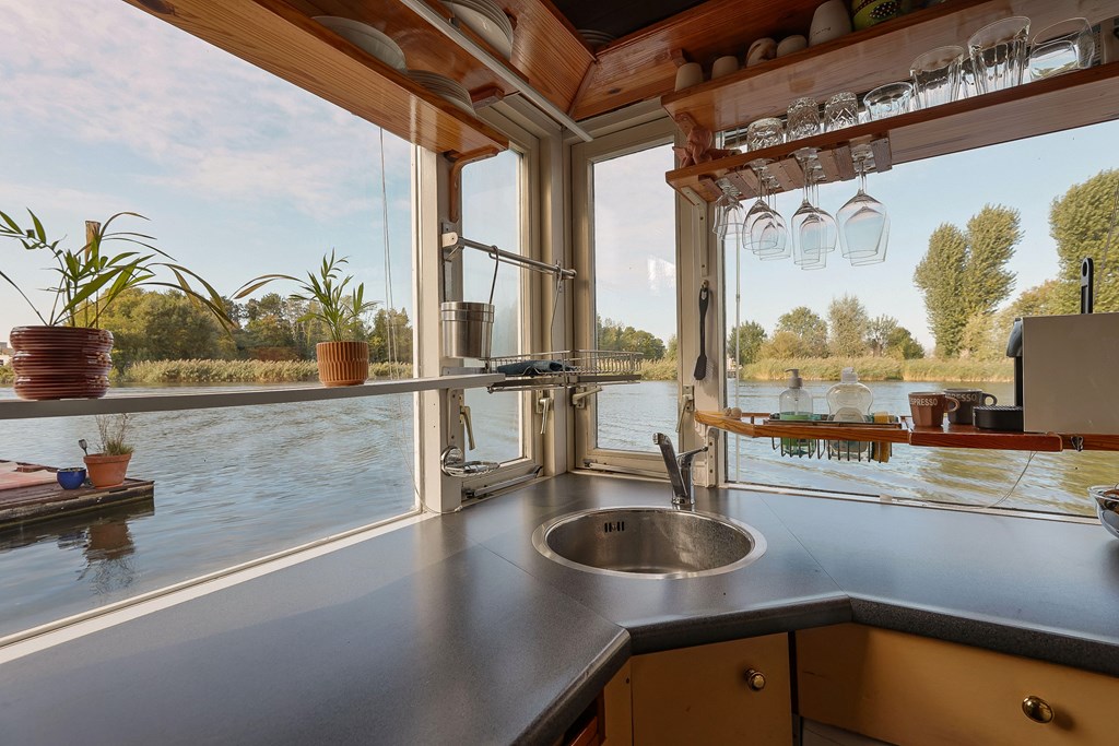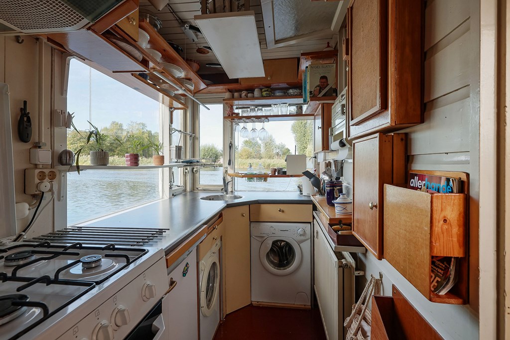 Een tiny house met alle ruimtes goed benut en efficiënt ingedeeld. Een volwaardige waterwoning met de sfeer van vervlogen tijden, op een toplocatie met een heerlijke tuin.
