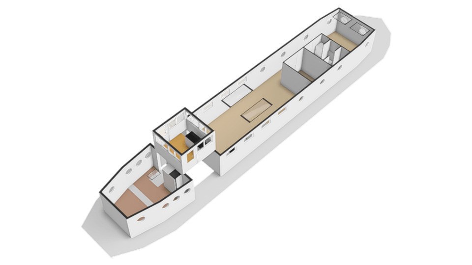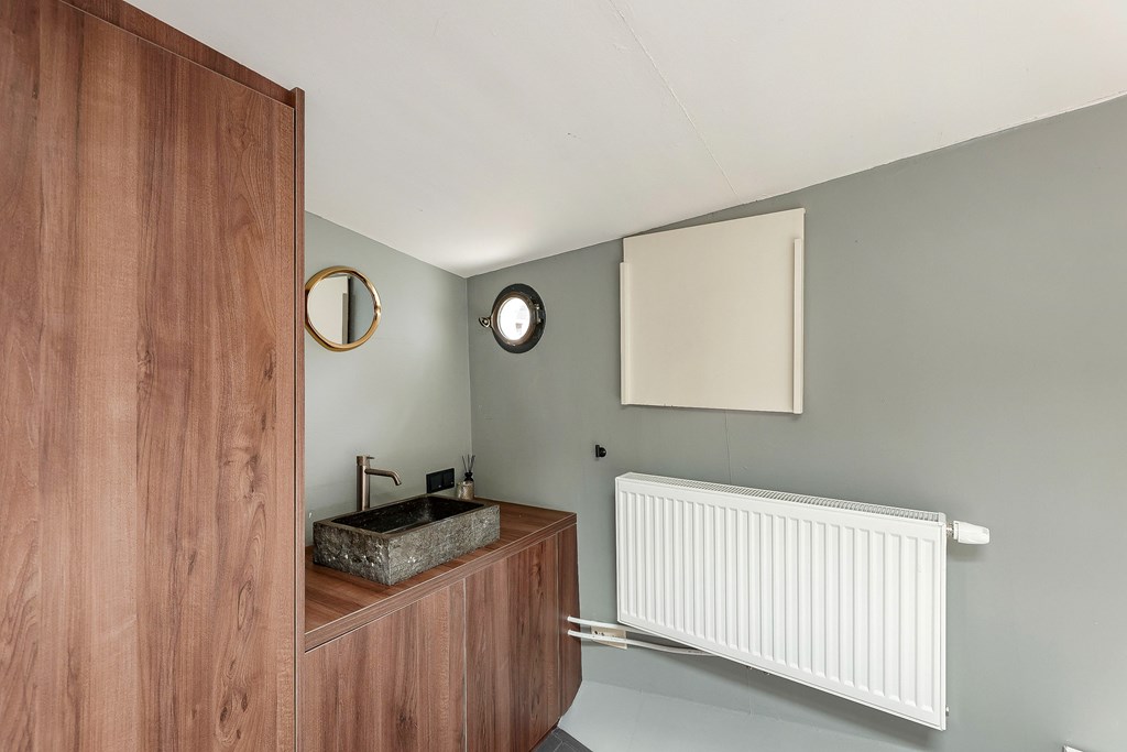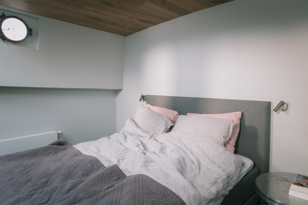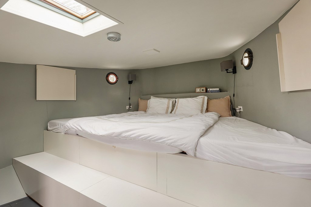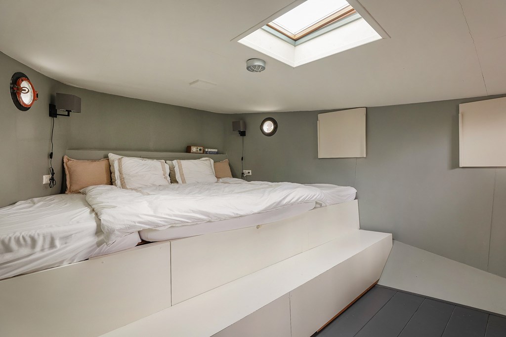 Het woonschip heeft twee slaapkamers, waarvan een slaapkamer eveneens geschikt is als werkkamer. De ruime walk-in closet kan ook als slaapkamer fungeren. De badkamer is een smaakvolle lust voor het oog waarbij de Italiaanse designkranen niet onvermeld mogen blijven.