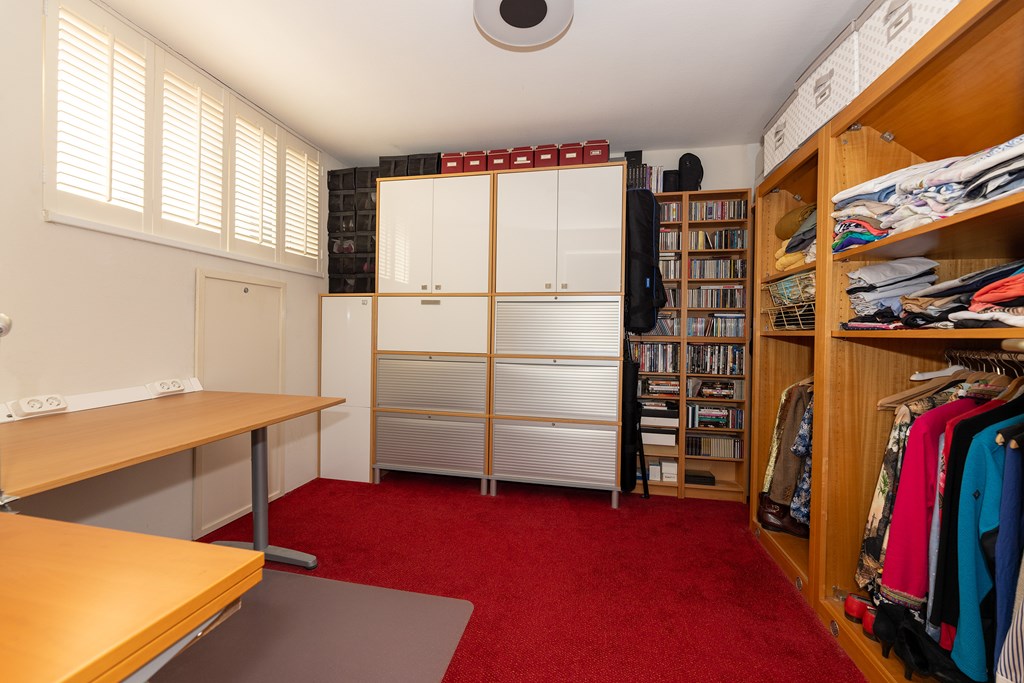 Daarnaast is er een tweede slaapkamer en een multifunctionele ruimte met aansluitingen voor wasmachine en droger, de technische installaties en voldoende bergruimte. Deze kamer kan eventueel worden ingericht als derde slaapkamer.