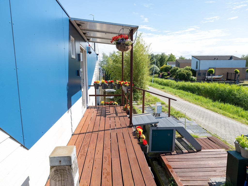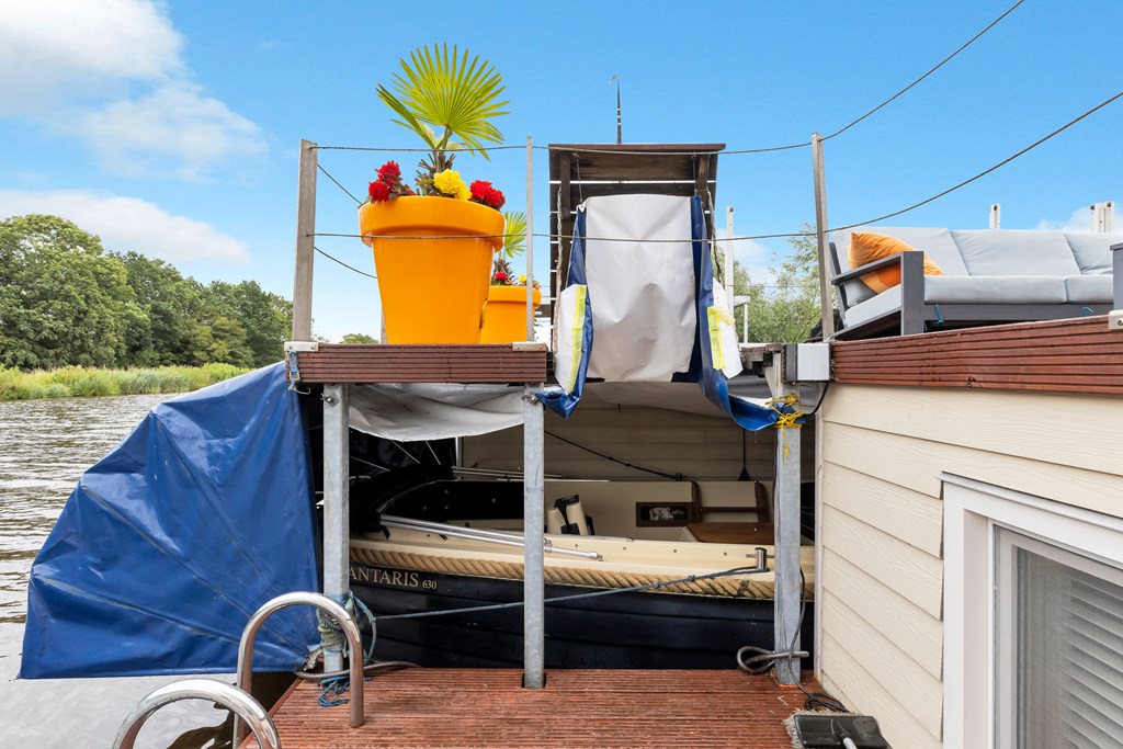 De watervilla beschikt over een inpandig boothuis voor een sloep van circa 6 meter, royale terrassen met windschermen en zonwering, en een gunstige zonligging op het zuiden. Duurzaamheid is ook meegenomen: het dak is voorzien van een groot aantal zonnepanelen. De gehele watervilla is voorzien van comfortabele vloerverwarming.
