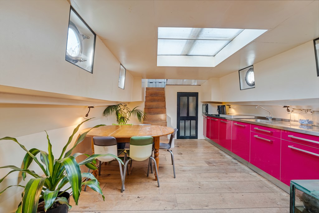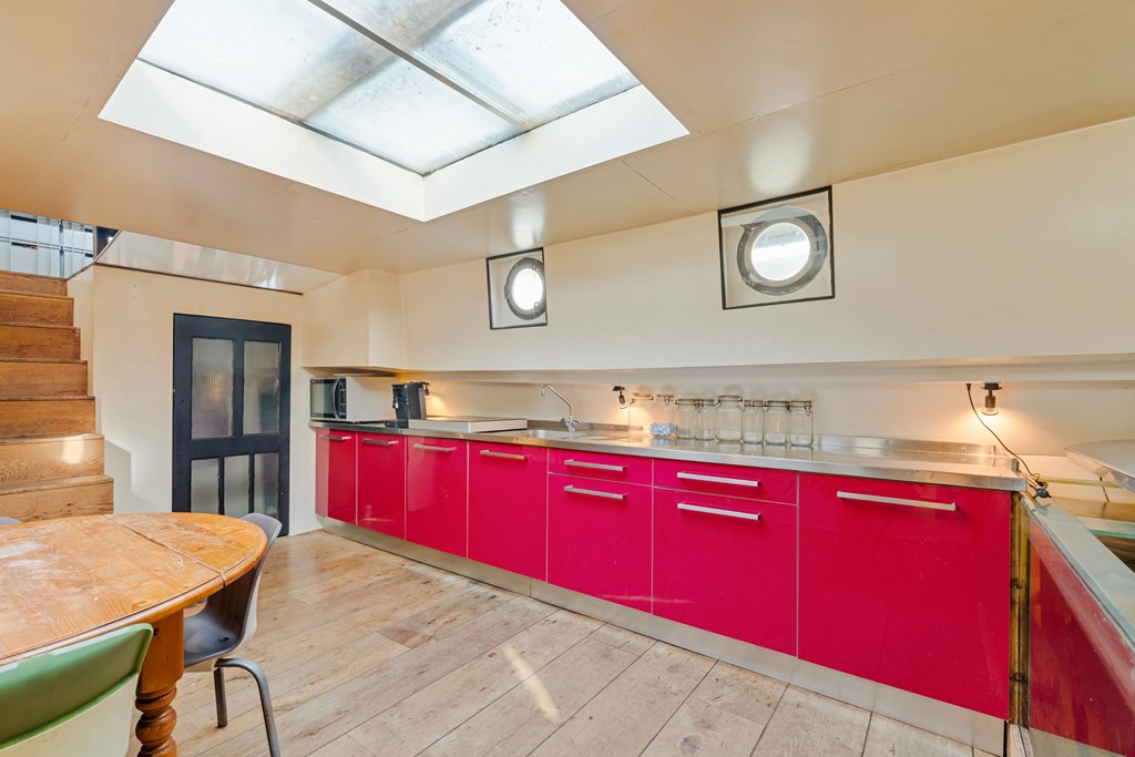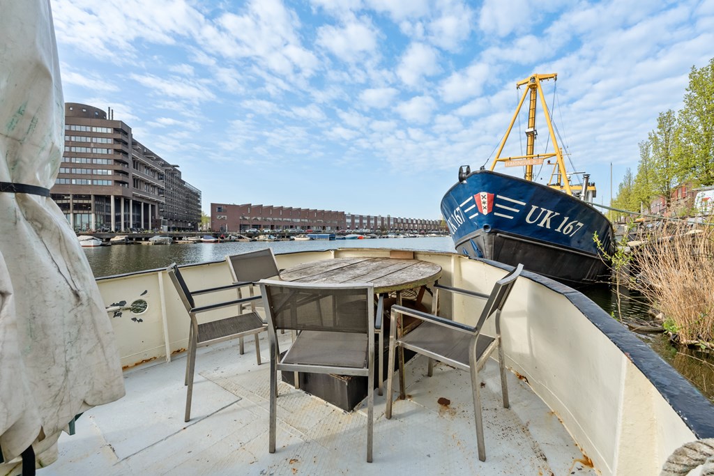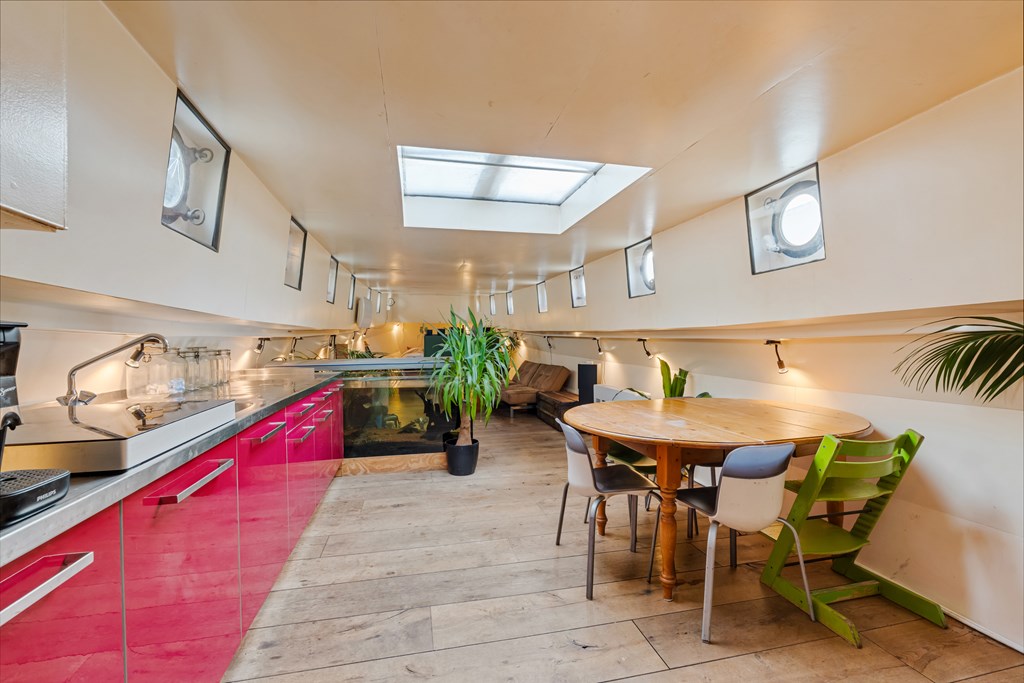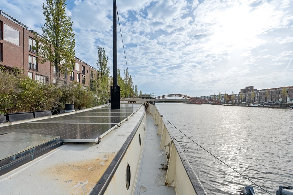 € 519.000,- k.k. – Leuk loftachtig woonschip te koop aan de prachtige Panamakade te Amsterdam!