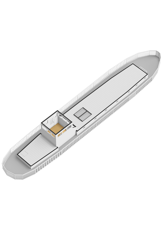 Er is ook een mogelijkheid om een bijboot langs het schip te leggen van ± 12 meter lang en op het dek heeft u nog een fijne zitgelegenheid.