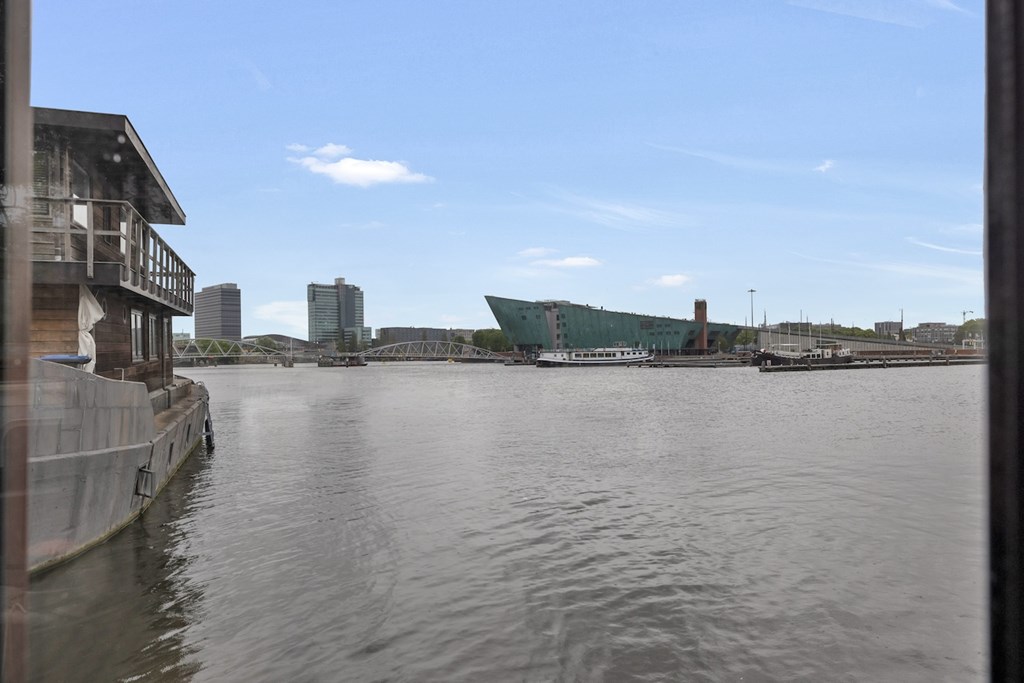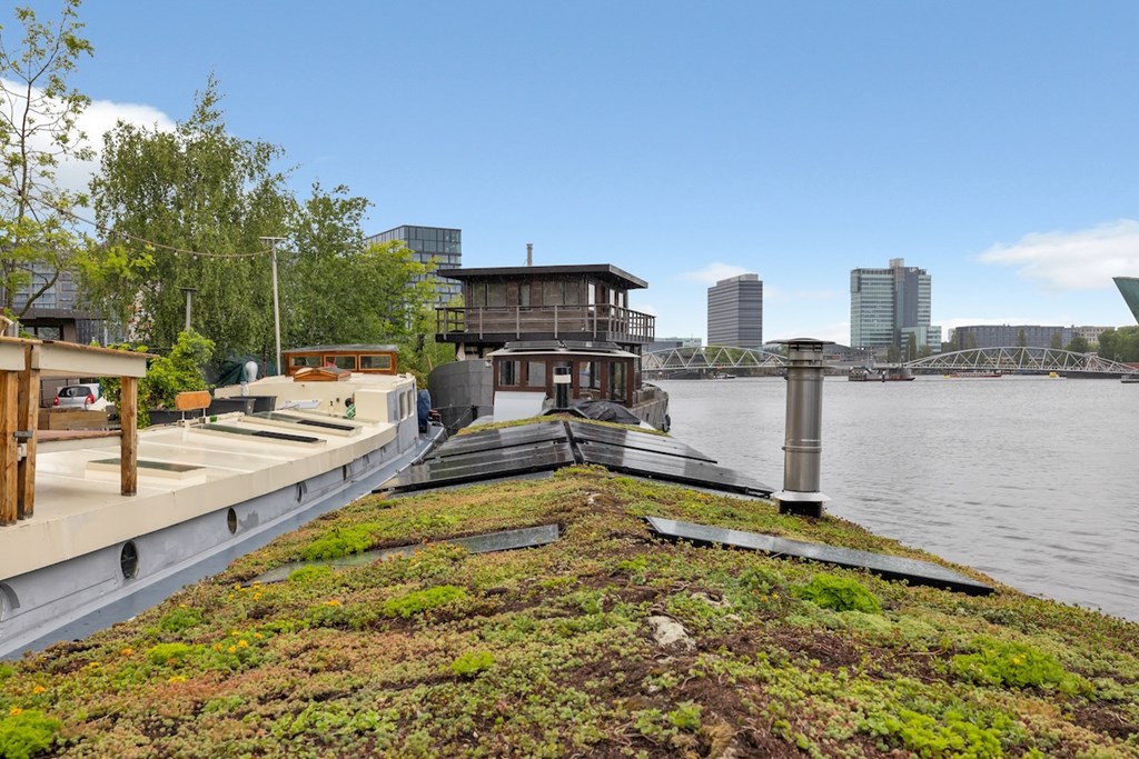 Aan de buitenzijde, dubbel afgemeerd op een prachtige locatie in het Oosterdok, ligt het sfeervolle en volledig gerenoveerde woonschip GEESSIENA te koop.
