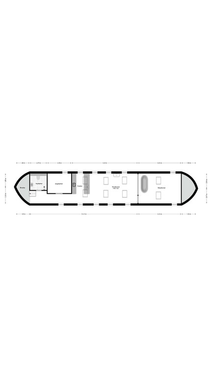 Afmeting: ± 25 x 4,74 meter, hoogte stuurhut ± 3,55 meter