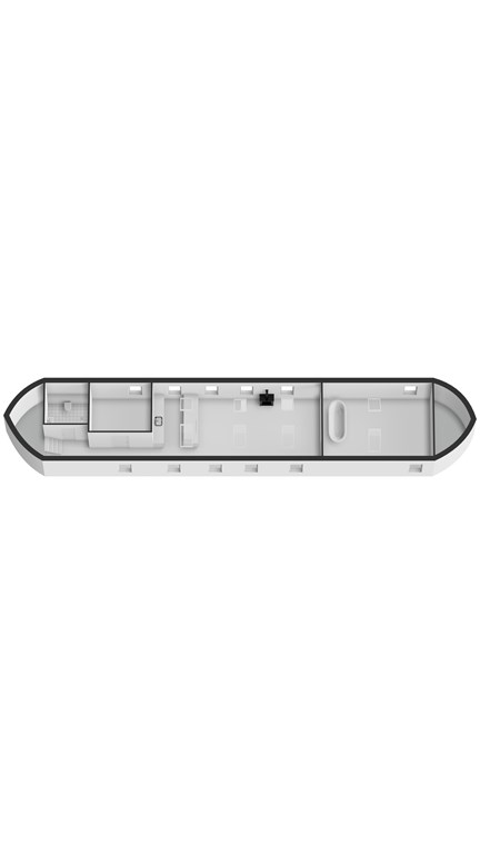 Het stuurhuis heeft een volledig nieuwe hardhouten bovenbouw met rondom isolatieglas. Hier bevindt zich de entree, met een vaste bank en rondom uitzicht over het water. Onder het stuurhuis is een technische ruimte en berging gesitueerd.