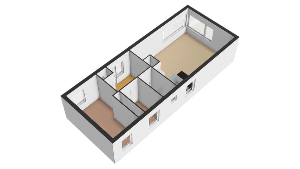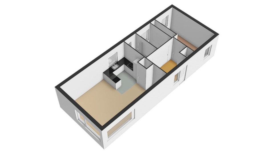 Opbouw: ± 13,30 x 5,12 x 3,20 meter