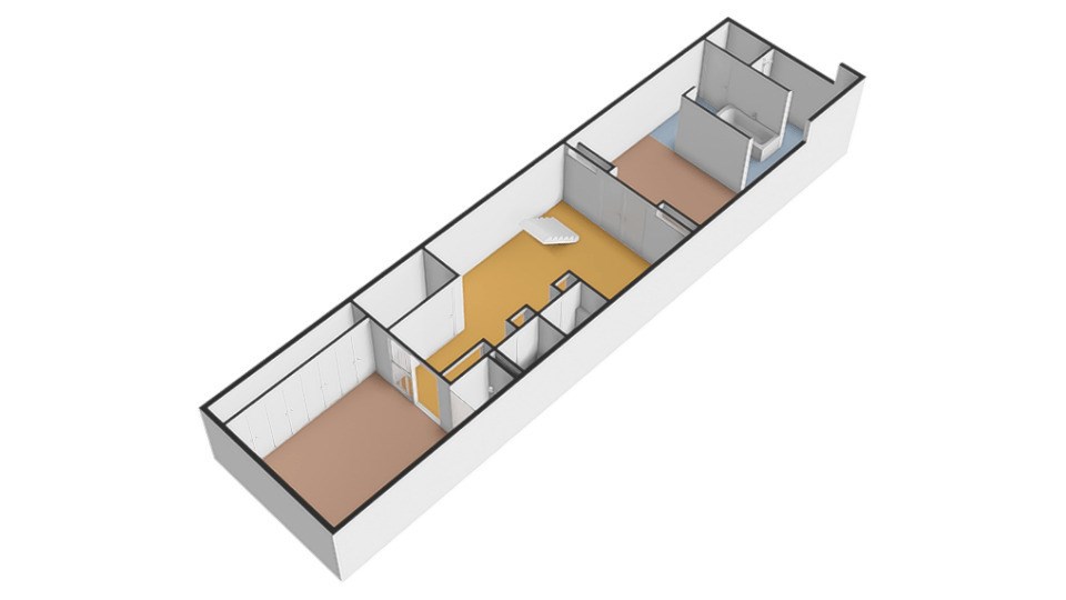 Werkkamer aan de kopse kant waar een extra slaapkamer van gemaakt kan worden.