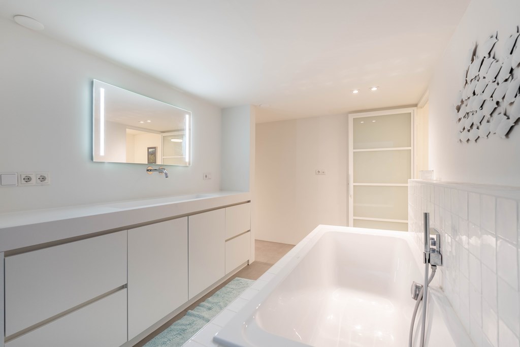 Ruime master bedroom met ensuite luxe badkamer met ligbad, ruime inloopdouche, wastafel combi en een Géberit Aquaclean Mera douche-wc.