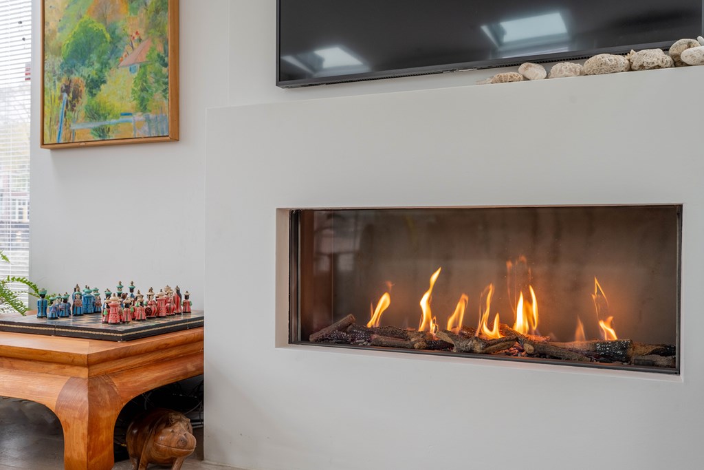 De gehele ruimte is voorzien van een doorlopend massief houten vloer met warme uitstraling.