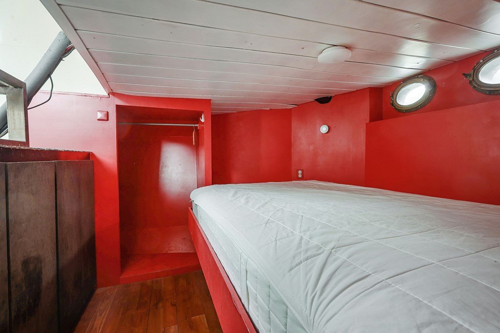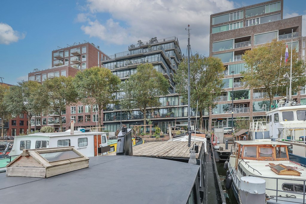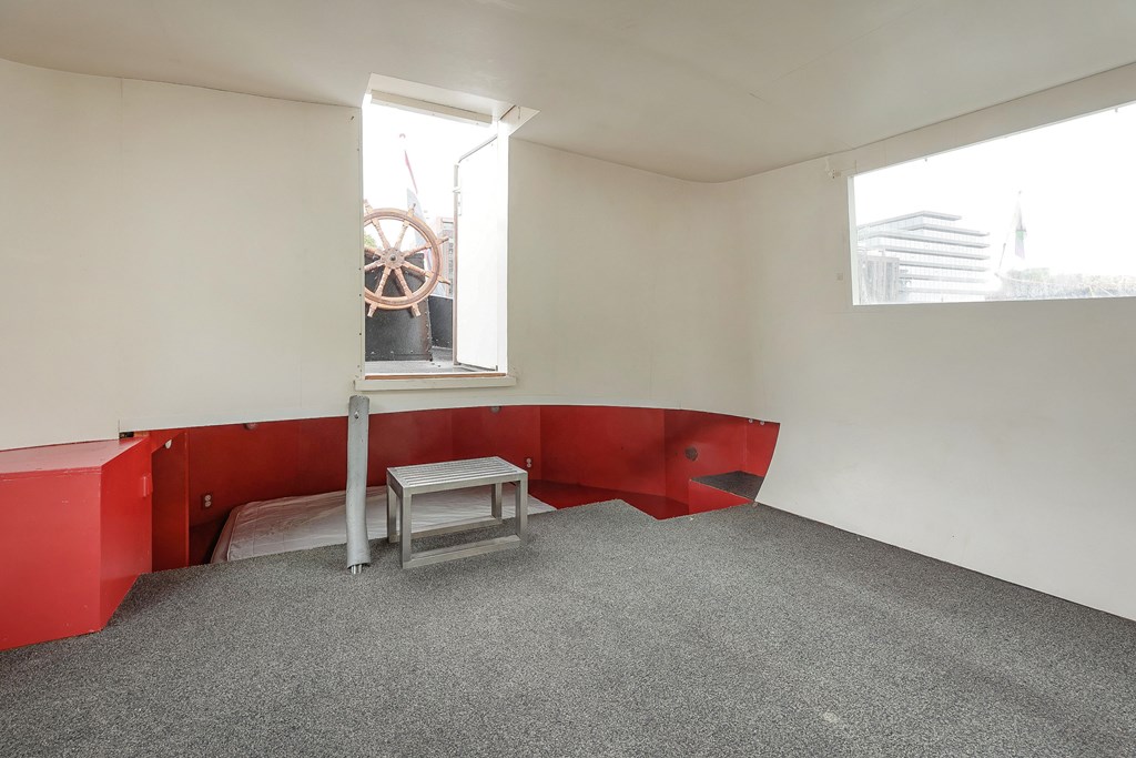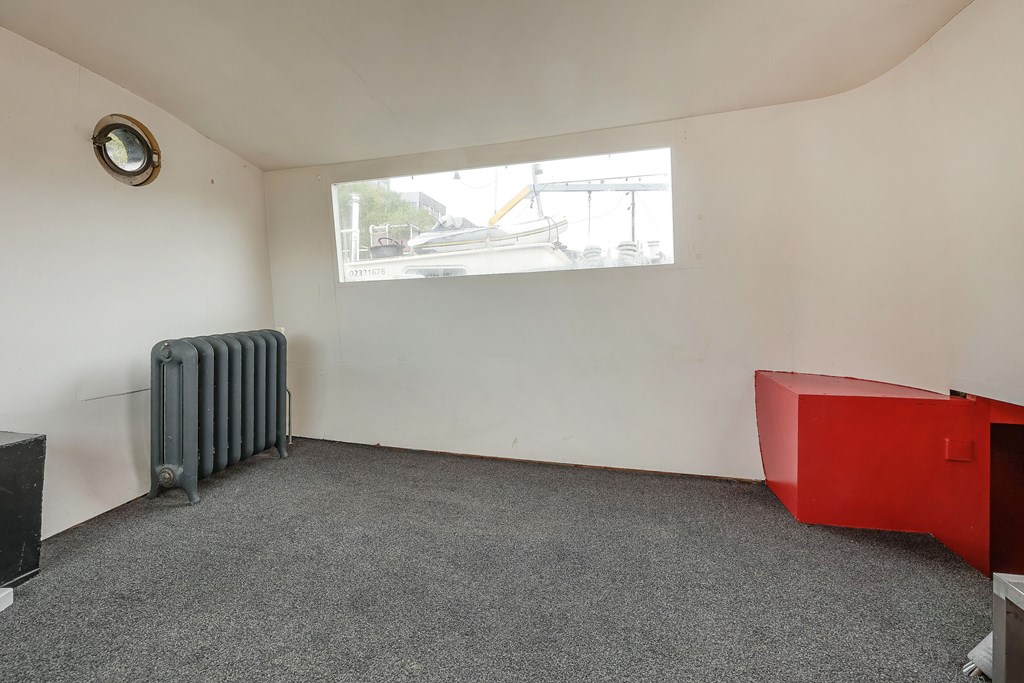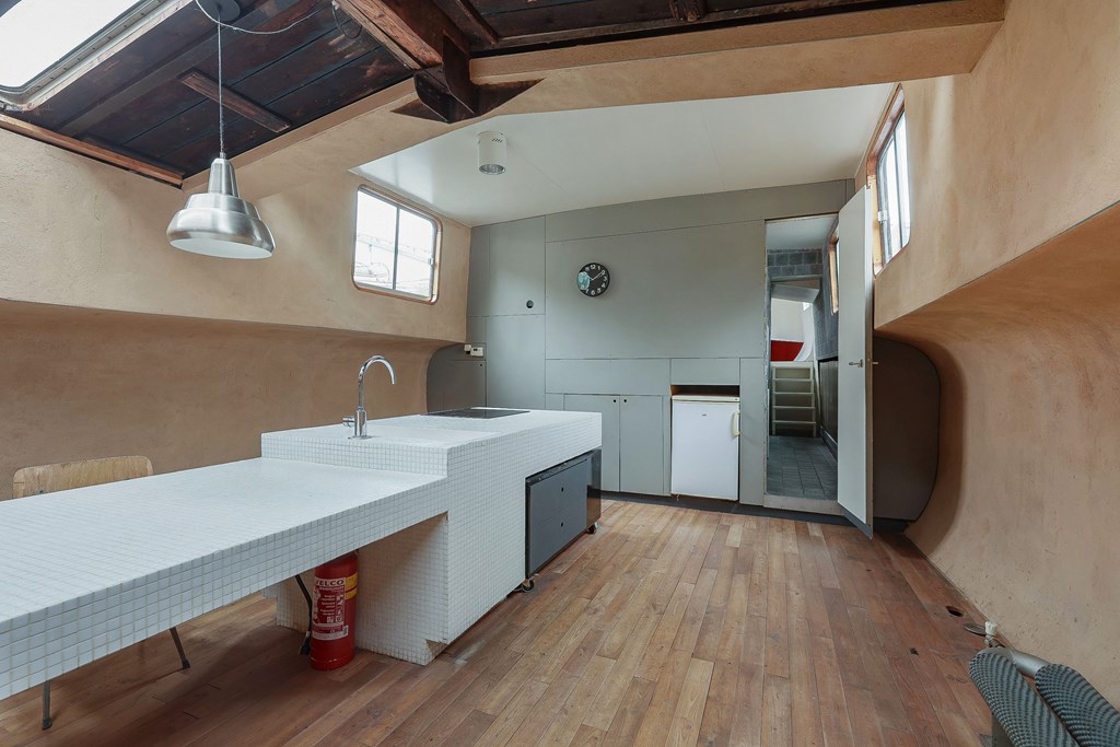 Het woonschip is in solide staat en de architecten-eigenaars hebben het een mooie balans gegeven van stoere scheeps kenmerken en een warm eigentijds interieur.