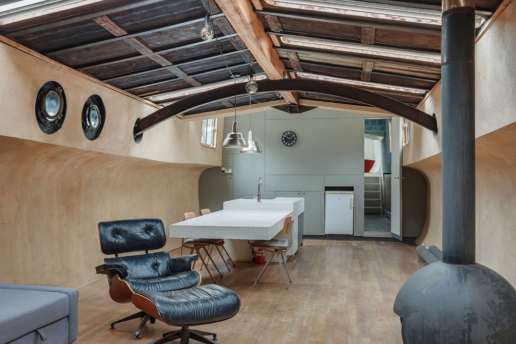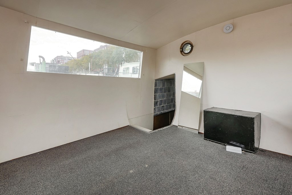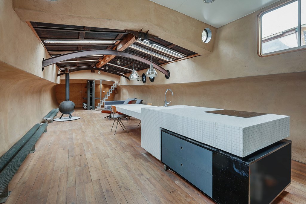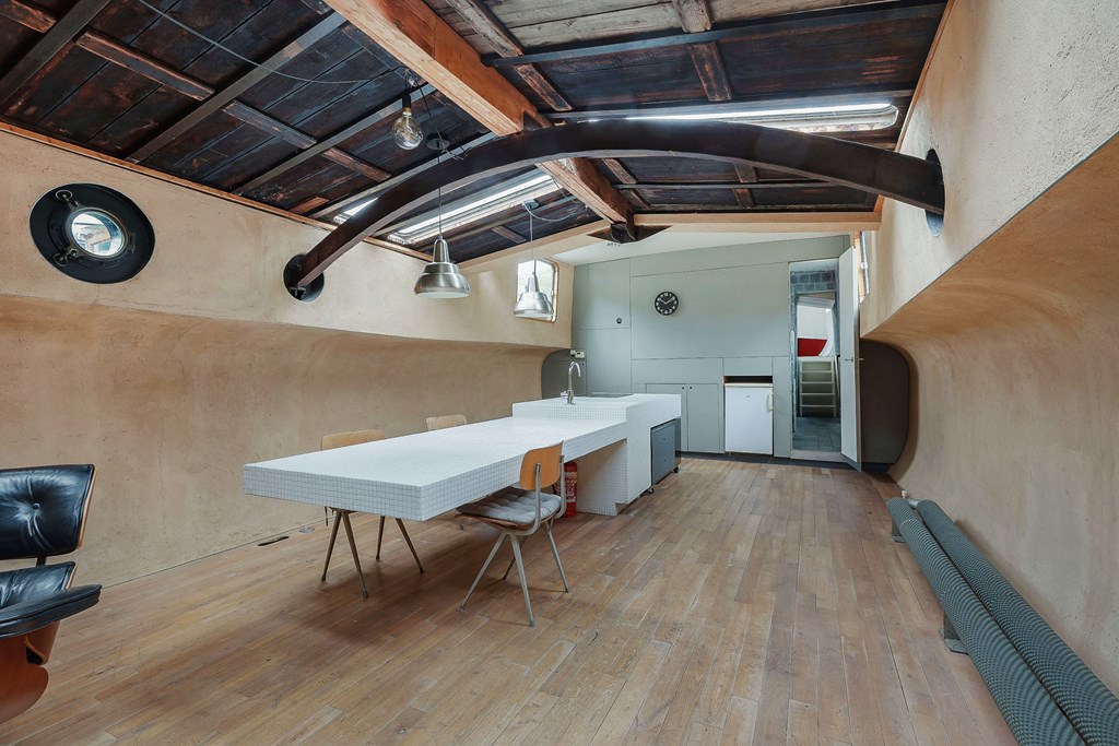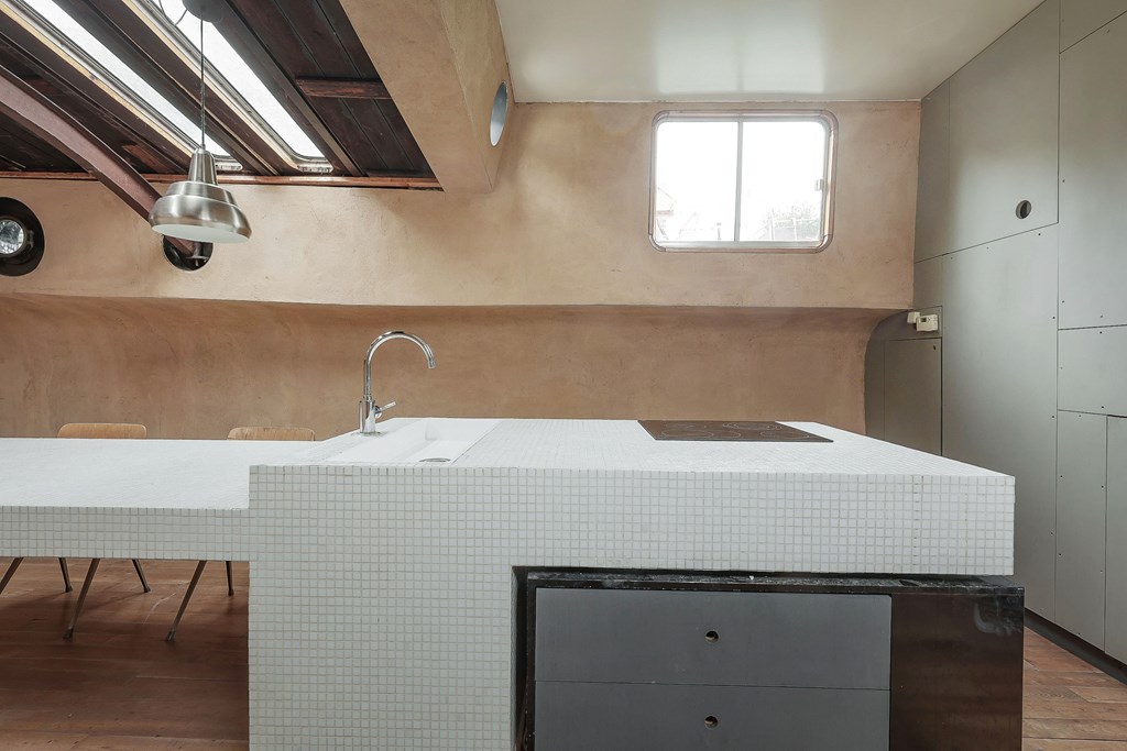 Het woonschip is in solide staat en de architecten-eigenaars hebben het een mooie balans gegeven van stoere scheeps kenmerken en een warm eigentijds interieur.