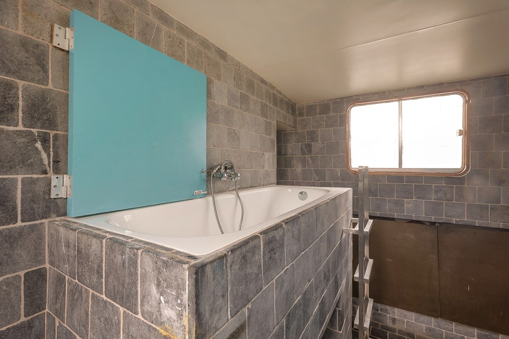 De badkamer is in steen opgebouwd met een ligbad op ooghoogte, onder het bad de opstelling voor wasmachine en wastafel een separaat toilet en douche. Vooronder (werk-/bergruimte), machinekamer, roef (in te richten als slaapkamer), achteronder (halfopen slaapkamer) en een studeer-/werkruimte onder de mastkoker.