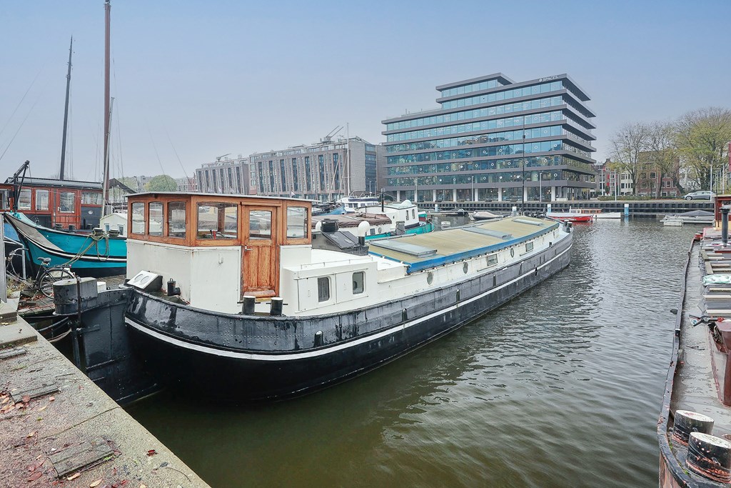 € 689.000,- v.o.n. – Aan het populaire Westerdok ligt dit historische woonschip genaamd PANTA RHEI.