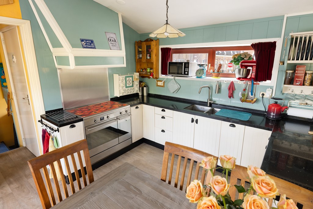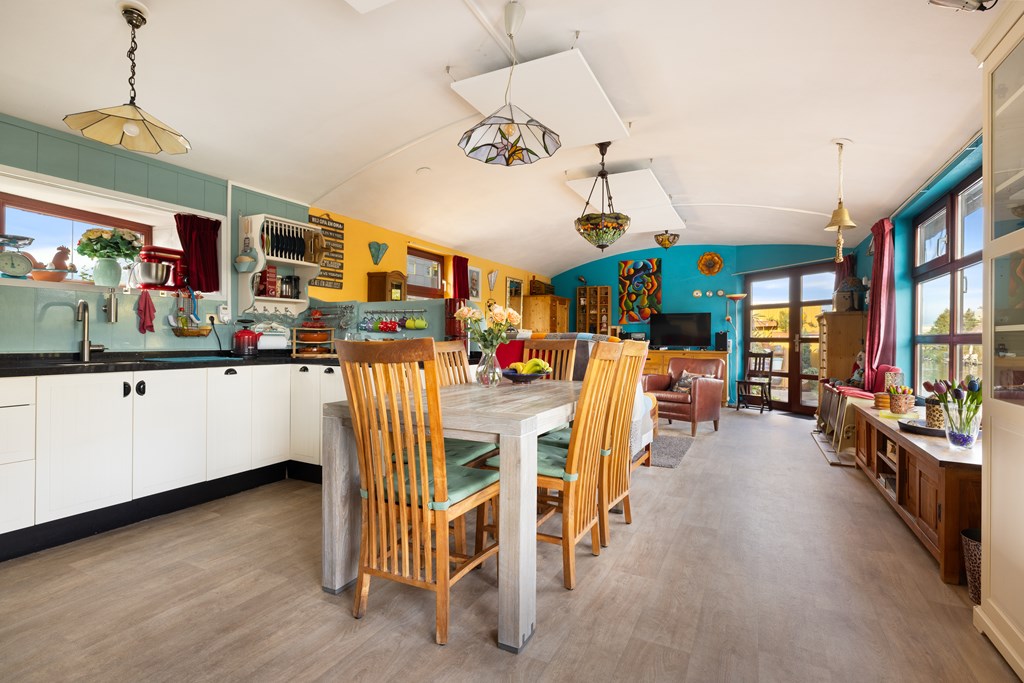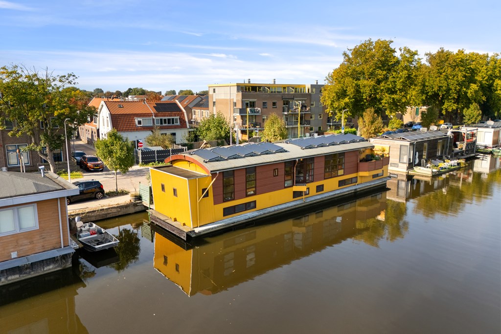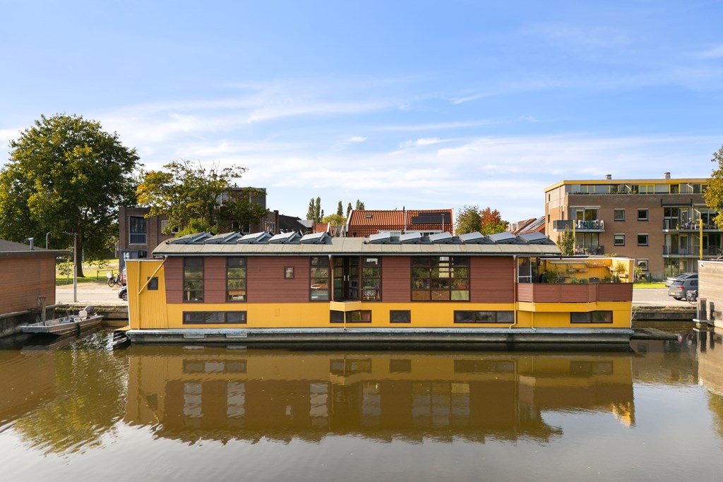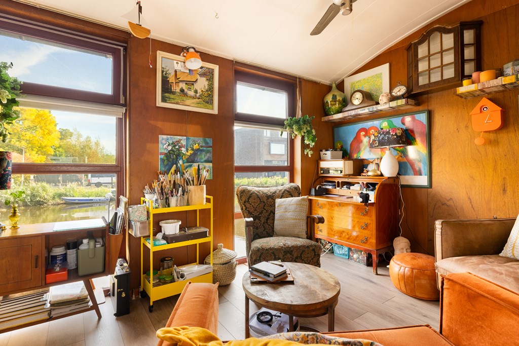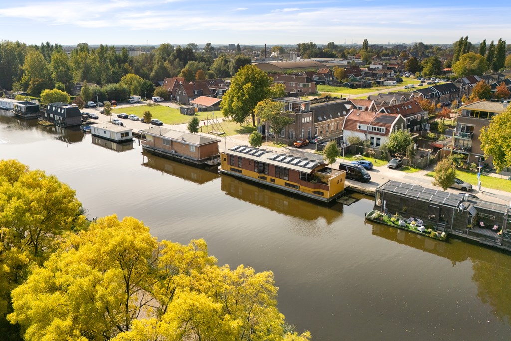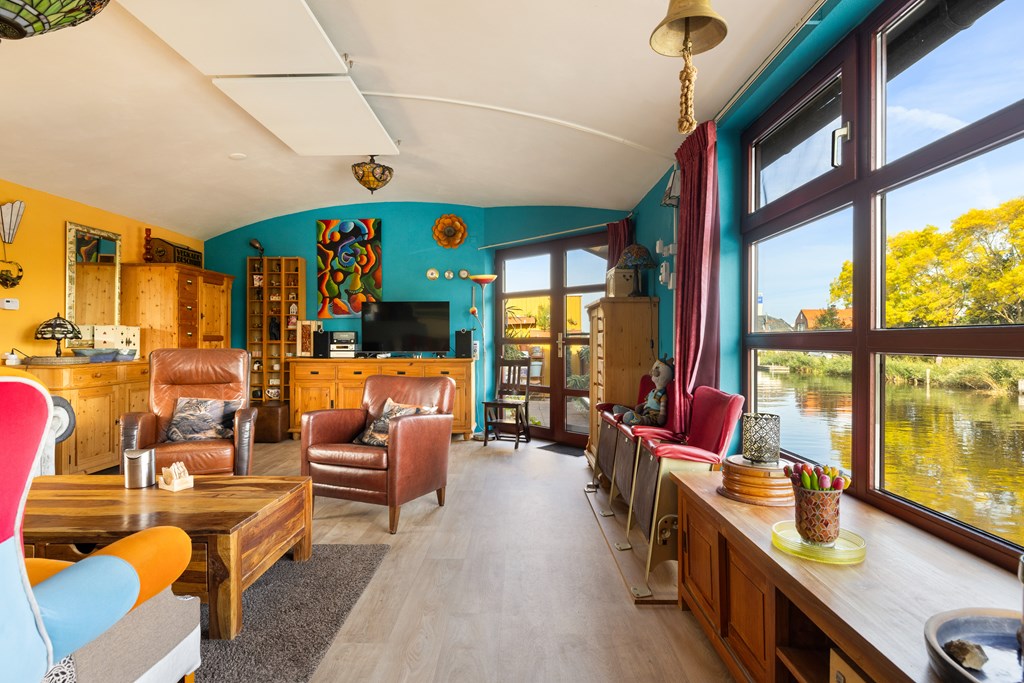 € 695.000,- v.o.n. – Prachtige, zeer ruime en kleurrijke woonark gelegen in het pittoreske Zaanse dorp Krommenie.