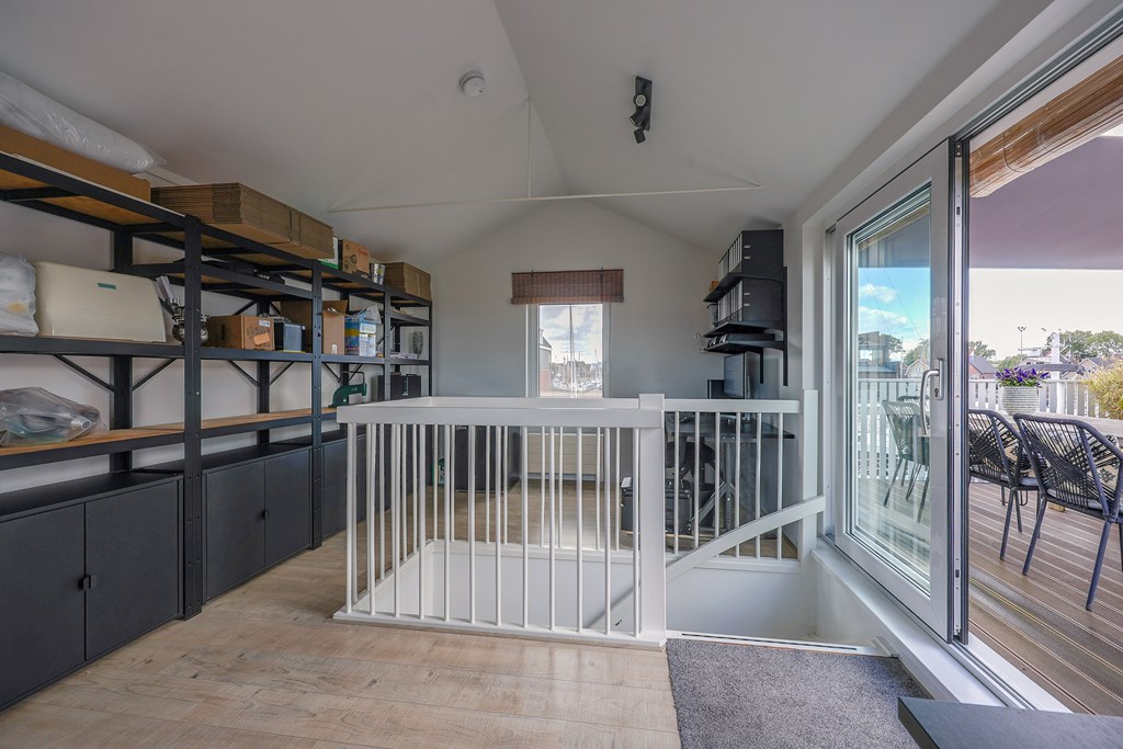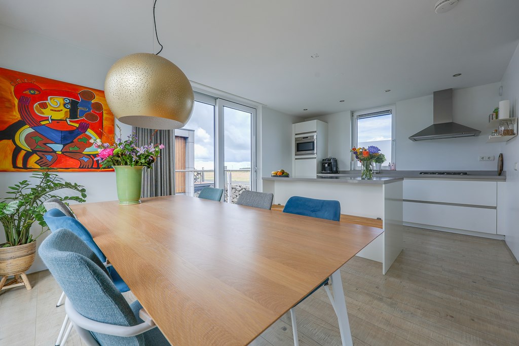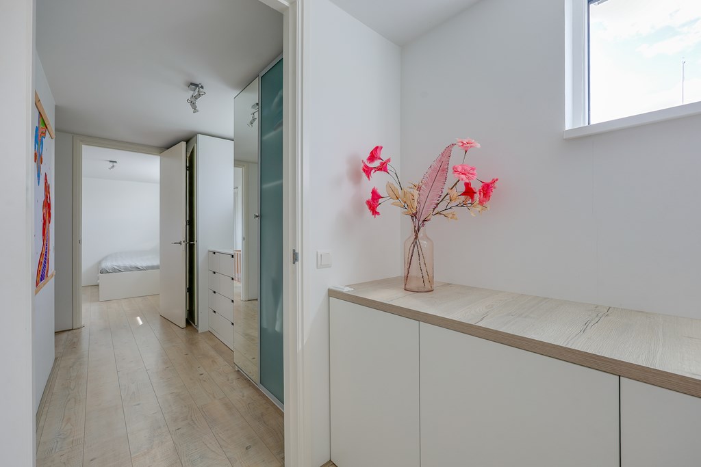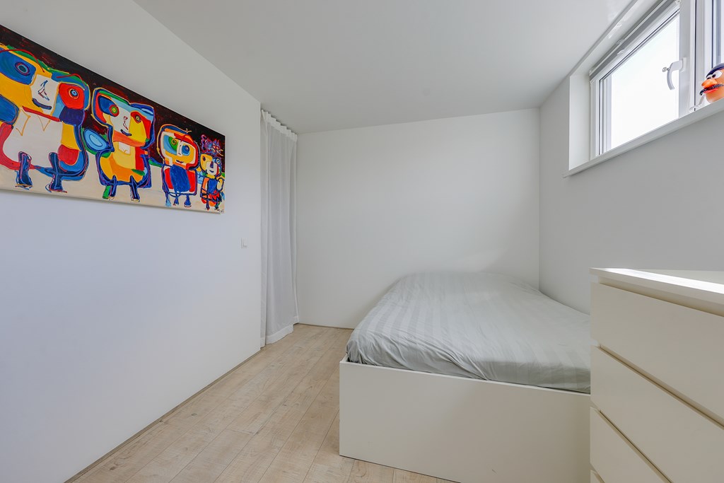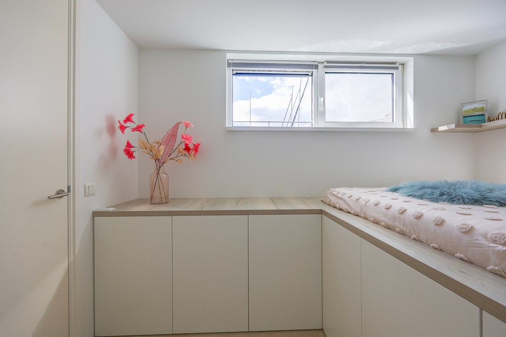 De woonkamer en keuken voelen licht aan door de vele raampartijen met uitzicht over het water. Drie ruime slaapkamers en een extra kamer die ingericht kan worden als een kantoor/aterlier of logeerplek. Een badkamer smaakvol afgewerkt en volledig uitgerust met ligbad, ruime inloopdouche en dubbele wastafel. Kortom een instapklare, moderne waterwoning met een woonoppervlakte van ± 139 m2.