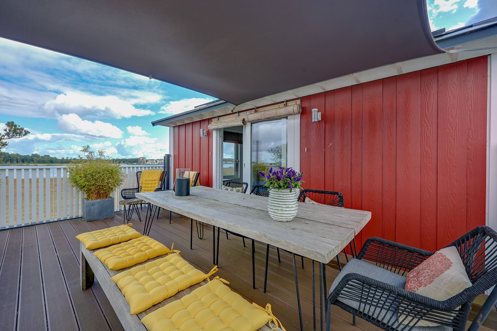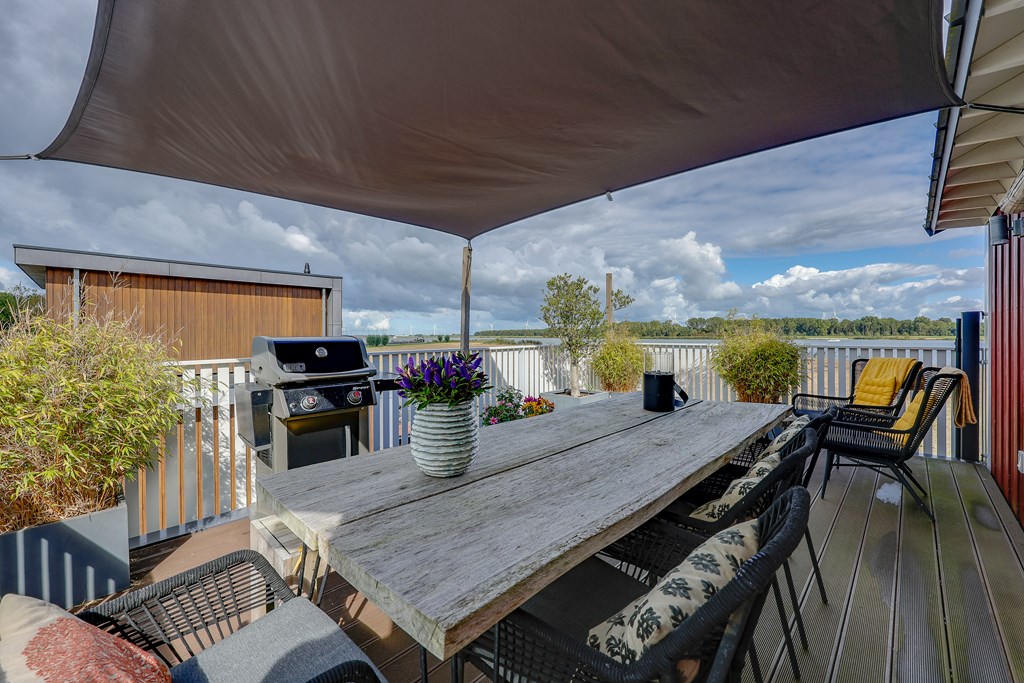 Het drijvende terras biedt voldoende plek voor een ruime loungesit en een dakterras met fantastisch uitzicht alwaar u kan genieten van prachtige zonsondergangen. Naast de watervilla is er uiteraard ook ruimte voor een sloep, sup of kano voor directe vaarverbindingen naar de randmeren.