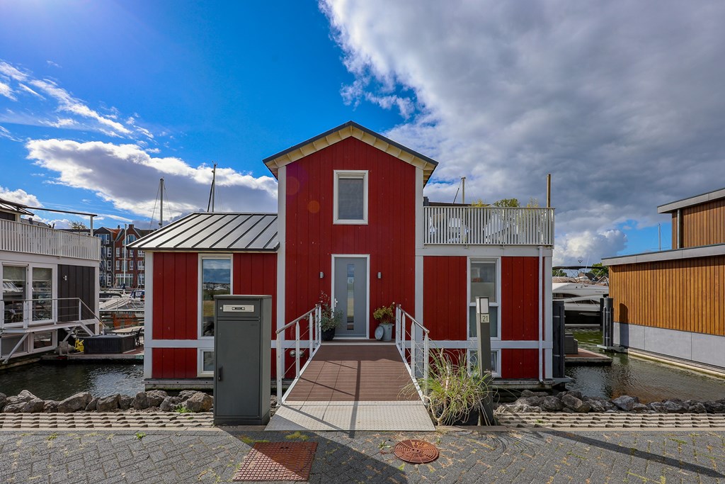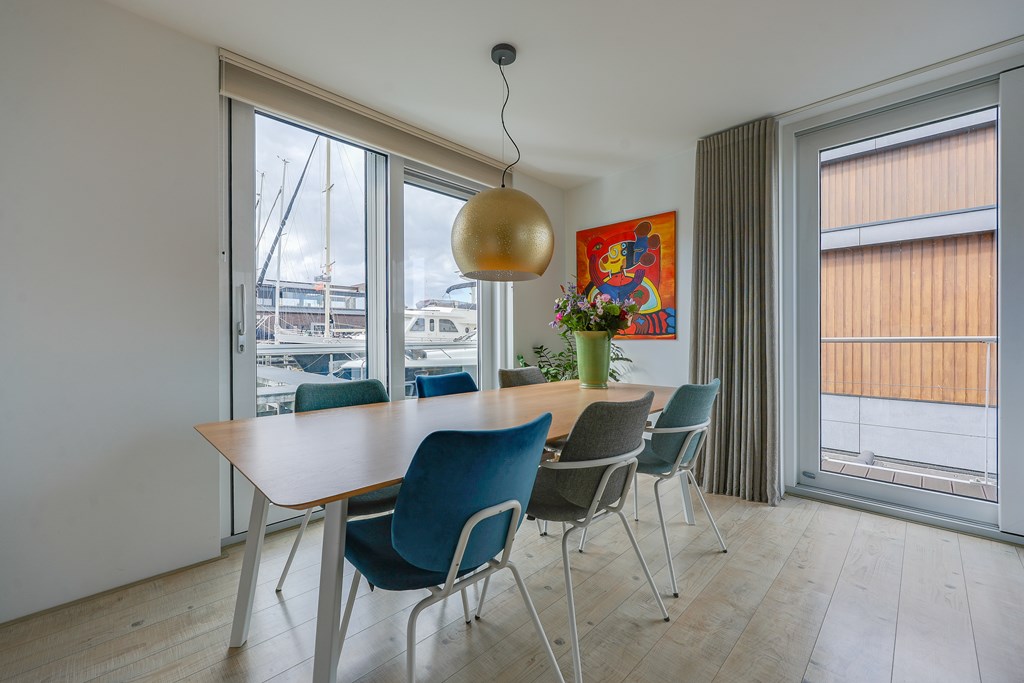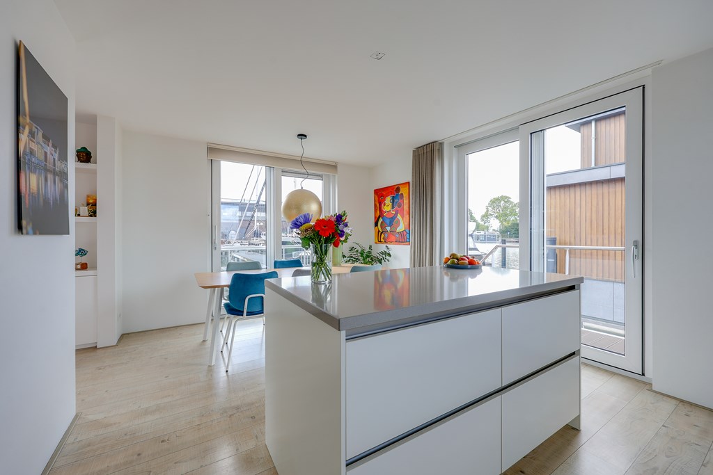 Een unieke kans om op deze schitterende locatie met uitzicht op de nieuwe haven de trotse eigenaar te worden van deze fraai vormgegeven watervilla met dakterras en drijvend terras en alles gelegen in eigen water!